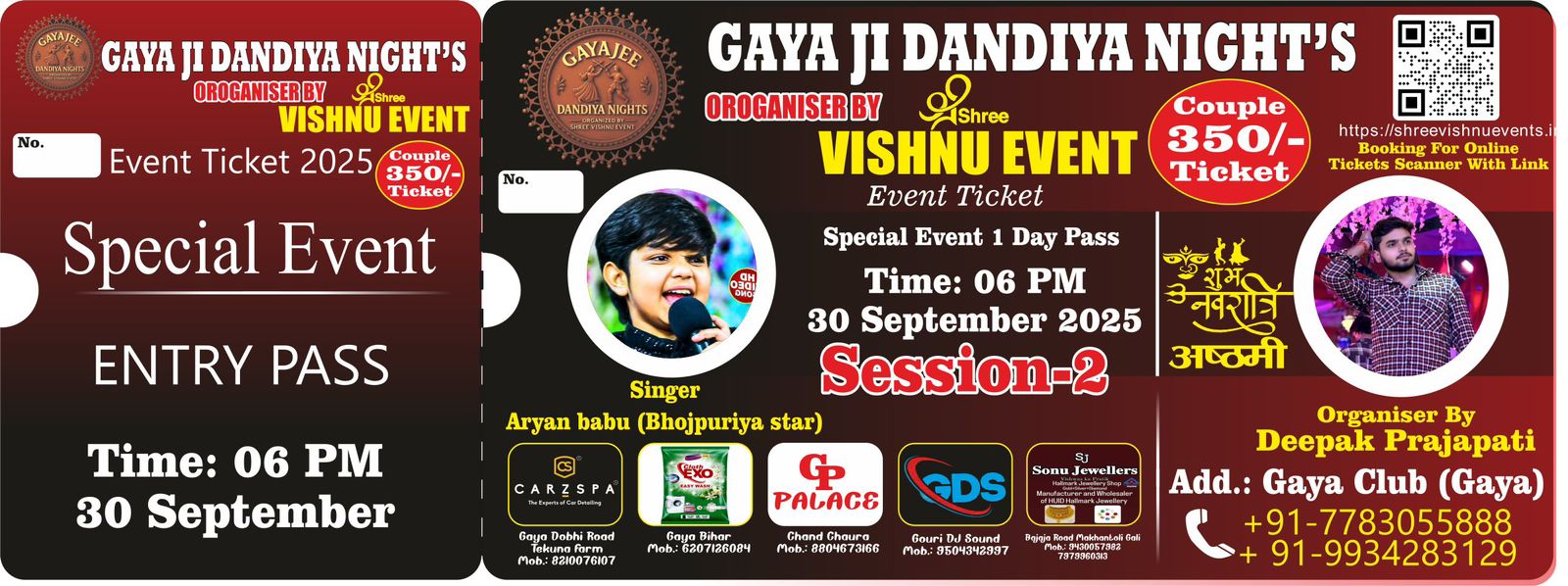 | 30 September 2025 | Garba & Dandiya Night - Session 2 | 06:00 PM Onwards | Aryan Babu (Bhojpuriya Star) |
